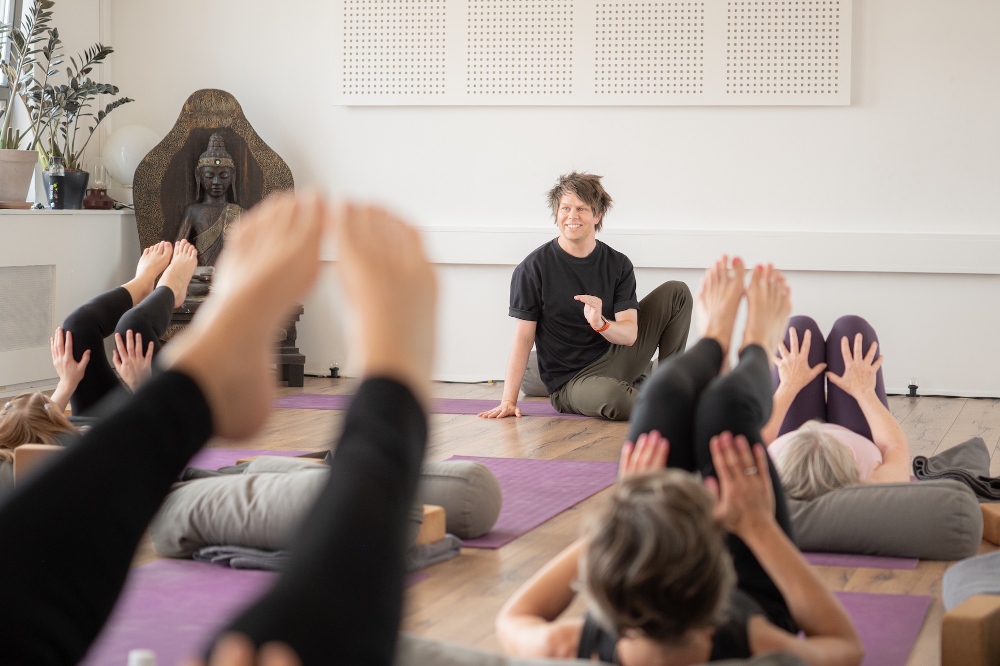 - Personlige instruktioner og alternativer: Identificer udfordringer og find løsninger, der passer til den enkelte elevs krop via brug af props, verbale instruktioner og teknikker, så hver elev kan opleve stillinger optimalt.